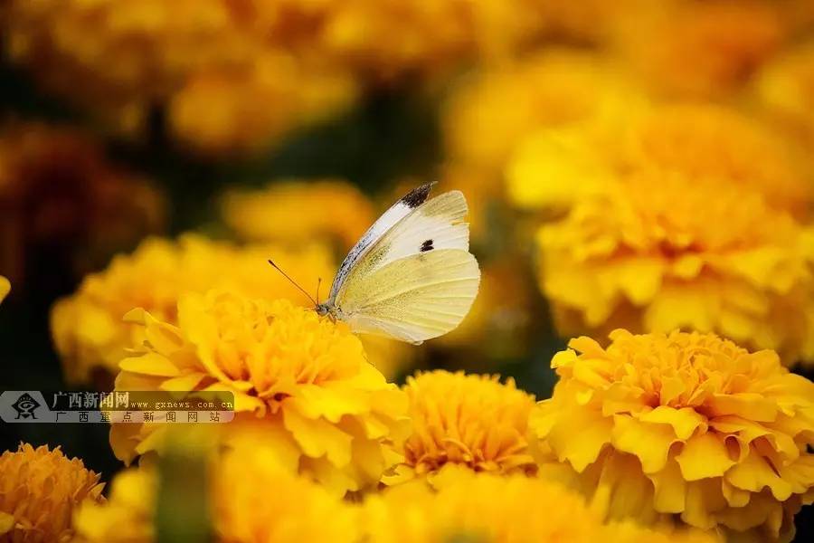 ▲南宁市人民公园绽放的菊花吸引着蝴蝶飞舞花间。严江萍摄