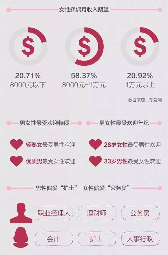 男性择偶喜欢会计、护士、人事行政类女性,尤其是28岁的轻熟女。