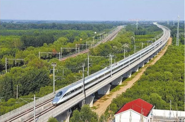 2011年6月,京沪高铁建成投产,这是世界上一次建成线路最长、标准最高的高速铁路。它贯穿北京、天津、河北、山东、安徽、江苏、上海7省市,连接环渤海和长三角两大经济区,全长1318公里。