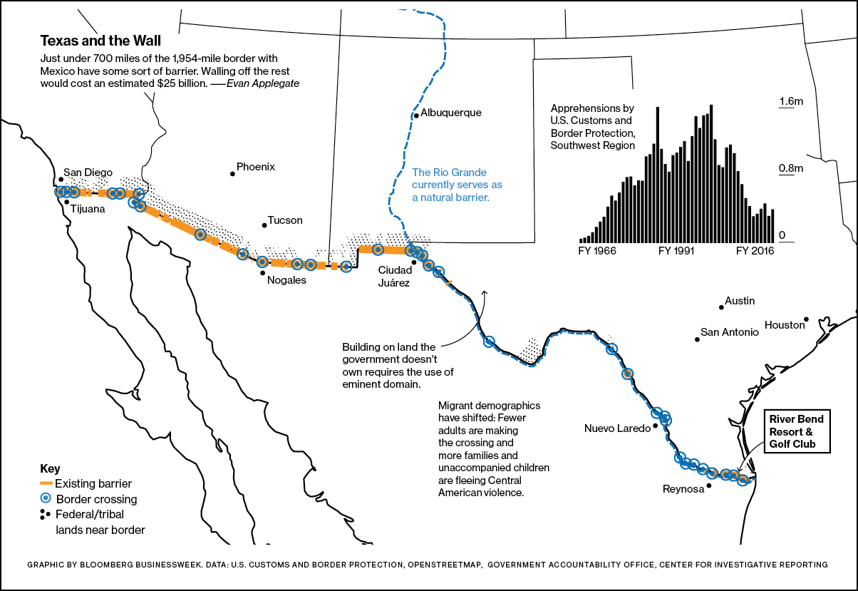 本来为了阻挡墨西哥非法移民偷渡的隔离墙,最后很可能要依赖墨西哥人才能建起来。但在彭博社的眼里,特朗普雄伟计划面临的阻碍并不只有这一个。