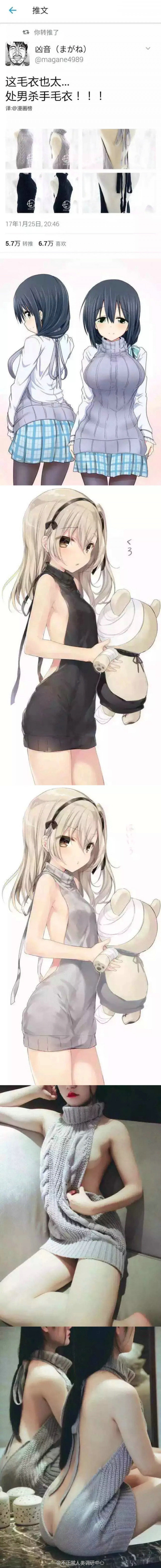 不知道为什么,按理说这种毛衣早就出现了,但不知道为什么在日本推特突然爆火,每篇推文都有好几千的转发