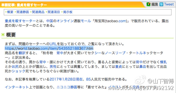 过年这几天,岛国推特上风靡一款号称“处男杀手”的毛衣,它的款式是这样的——