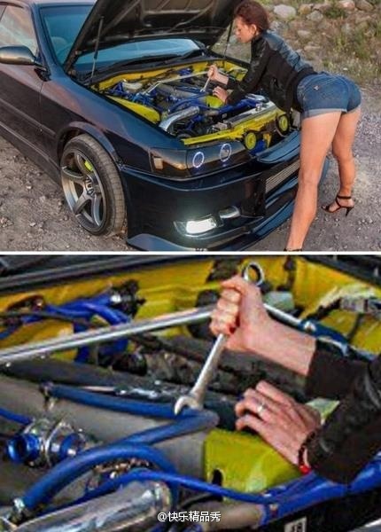 不是摆拍,女司机就是这样修车的