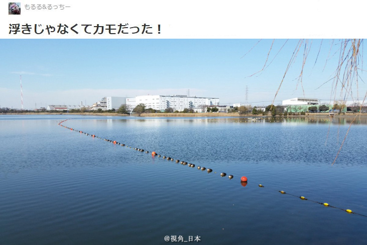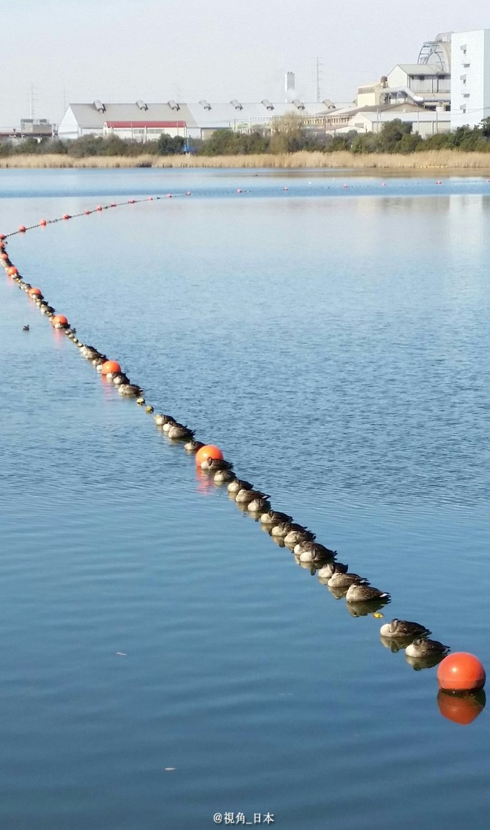 浮在海面上的那一长排。红色的是浮子,而黑色的,是鸭子
