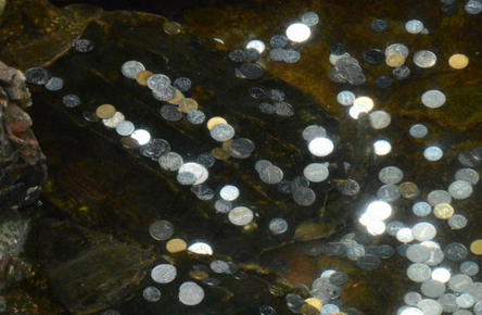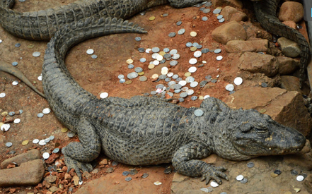图说:扬子鳄鱼池和大鳄龟展览池中被投入百枚硬币。网络图