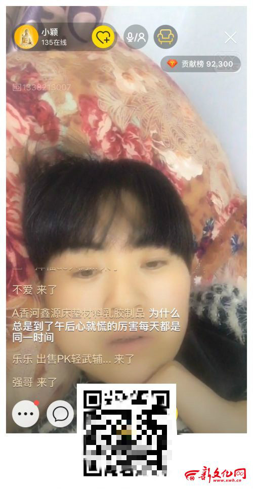 1月19下午3时30分,记者进入名为“出马仙--小颖”的直播间。主播是一位30岁左右的女性,长发、齐刘海,身材微胖,穿蓝白色相间的横条毛衣,侧躺在床上,枕头印有红白花朵。半个小的时间内,该女子始终与观众闲聊。